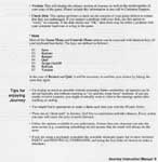 to make siege on the Dread Lord himself? ...We Shall see. If you've ever been spellbound by a fantasy story, captivated by a role playing game, or enthralled by interactive fiction, Journey will rouse your imagination to new heights. Join us in our Journey. Travel beyond the known boundaries of interactive software into a new world of computer storytelling. Marc Blank-the pioneering co-author of the enormously popular Zork and Enchanter trilogies-weaves a fabulous tale of great adventure, drawing from the highest art of storytelling and the excitement of role playing games to create a fascinating new kind of computer entertainment. In Journey, you become part of a mesmerizing epic created in the tradition of J.R.R. Tolkien's The Lord of the Rings. For five long years, failed crops, tainted water, and sickness have blighted a peaceful land. Brave villagers have set forth to find relief for their suffering region, but none have returned. Now, yet another small band is preparing to begin the odyssey. You'll share the adventures of Tag, Praxis, Bergn, Esher, and Minar as they solve puzzles, overcome obstacles, explore unknown lands. Pass into the world of Journey with ease. The game is simple to learn: your challenge lies in choosing the right path, casting the best spell, and knowing whether to lie or tell the truth. Your imagination will be taxed more and more with each passing day as the difficulties become increasingly complex. As the tale unfolds, you become acquainted with the characters and their personalities. Each character acts on his own, sometimes advancing the quest, sometimes hindering it. You help them decide where to explore and what actions to take, taking part in their strategies and problem-solving. The intrigue of a masterfully told story. The thrill of being a part of a great adventure. The challenge of leading the tale to its climactic conclusion. This is what makes Journey a uniquely compelling entertainment. |